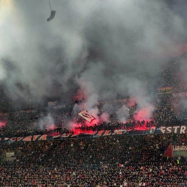 赛前半个多小时,米兰南看台已经打出这样的横幅。随着双方球员从通道走出,魔鬼的脸庞瞬间覆盖了整面看台。半决赛首回合赛前,AC米兰俱乐部号召全球粉丝用红色的灯光点亮每一间屋子,红色象征着米兰,或许也可以象征《神曲》里身穿红袍的但丁。米兰球迷们自称从地狱走出,他们的球队在1月份的连续惨败后几乎坠入地狱,在3月份的灵感枯竭时与维吉尔一同来到炼狱,又在5月份的欧冠主题曲中梦想进入天堂。然而,魔鬼终究被拦在了天堂门外,蓝黑军团施展了驱魔之术。