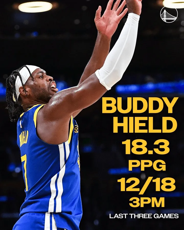 虎扑01月22日讯 今日,勇士在官方社媒上晒出了巴迪-希尔德近三场比赛的场均数据,并配文称:“巴迪最近正火力全开!”勇士球员巴迪-希尔德近三场比赛场均得到18.3 分,三分球18投12中。北京时间1月23日8:30,勇士将客场对阵独行侠。来源:X 虎扑01月22日讯 今日,勇士在官方社媒上晒出了巴迪-希尔德近三场比赛的场均数据,并配文称:“巴迪最近正火...