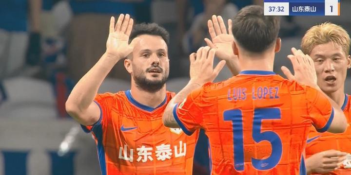 第37分钟,卡扎伊什维利前场抢断,随后单刀破门,泰山1-1扳平申花。