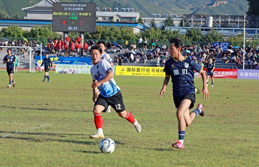 9月7日,2025吉林银行延边州县(市)足球联赛第一轮比赛打响,图们市坐镇主场迎战和龙队。经过激烈角逐,最终以4比1战胜和龙队,取得联赛首胜!比赛进行到第6分钟,图们队9号黄智海抓住队友开出角球的机会,在人群中高高跃起,以一记势大力沉的头球攻门为图们队斩获联赛首粒进球;第22分钟,和龙队99号金鑫打进点球,将比分扳为1:1;第30分钟,图们队30号朴勇霖以速...